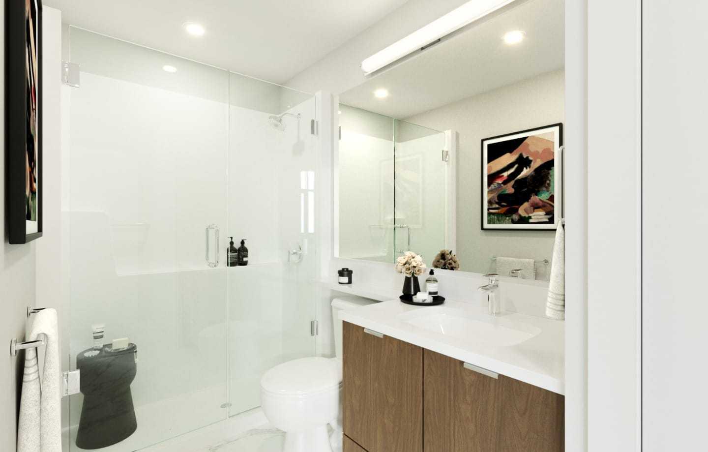 Kitchens evoke both style and function with full-sized stainless-steel appliances and modern quartz countertops with tile backsplash. Bathrooms amplify rest & relaxation with sleek frameless glass showers or deep soaker tubs.